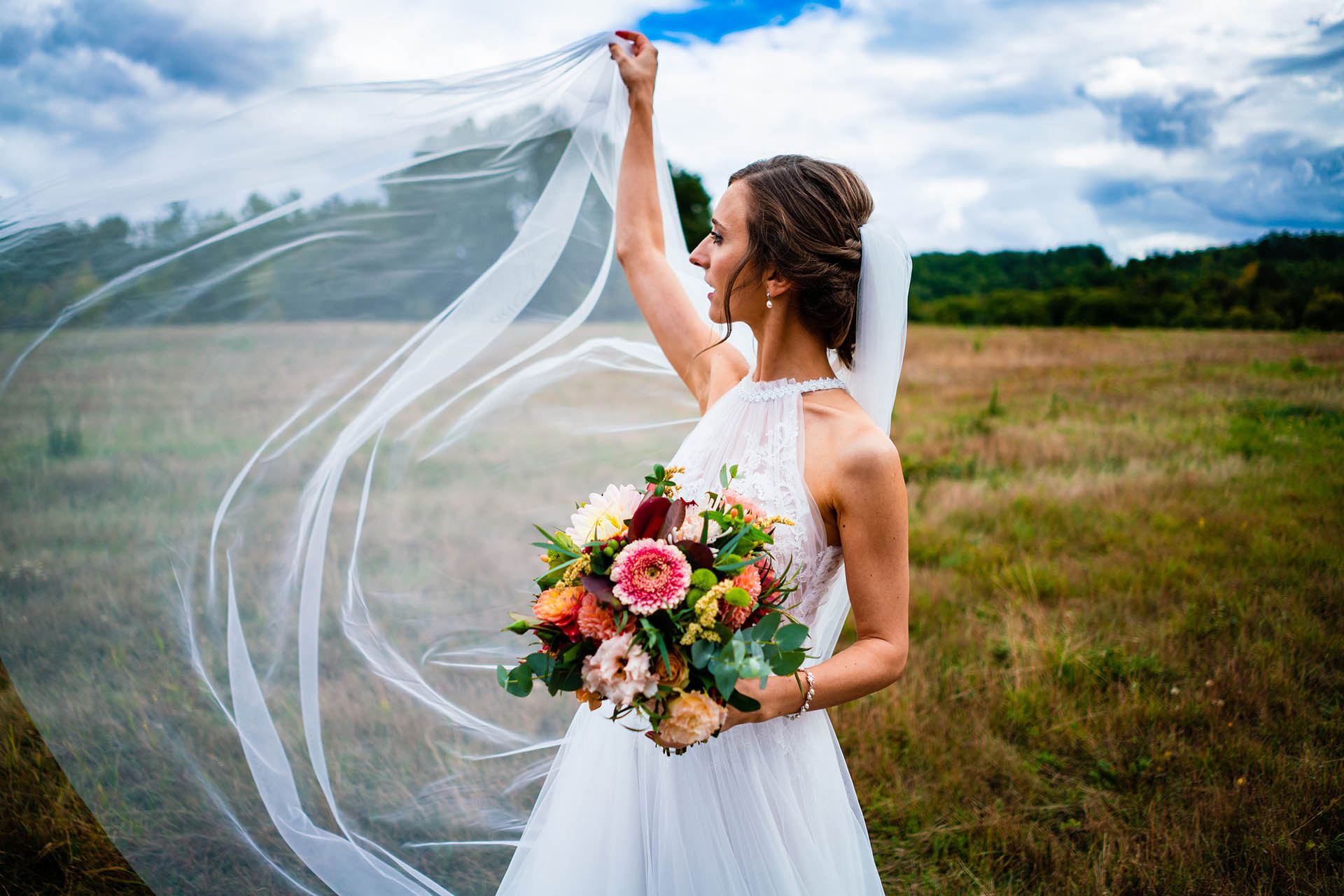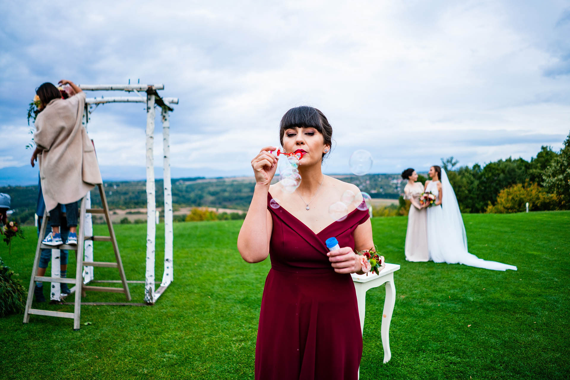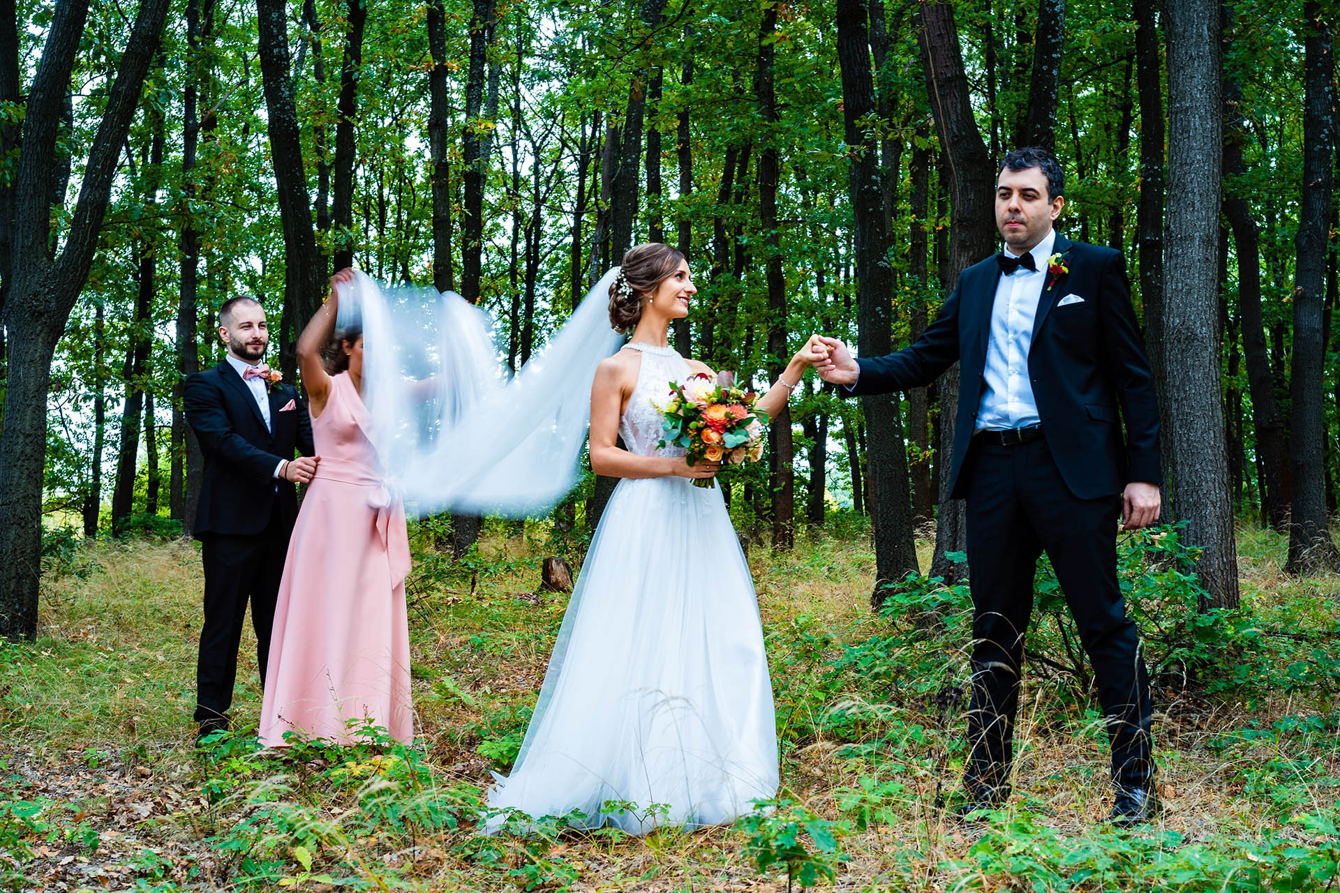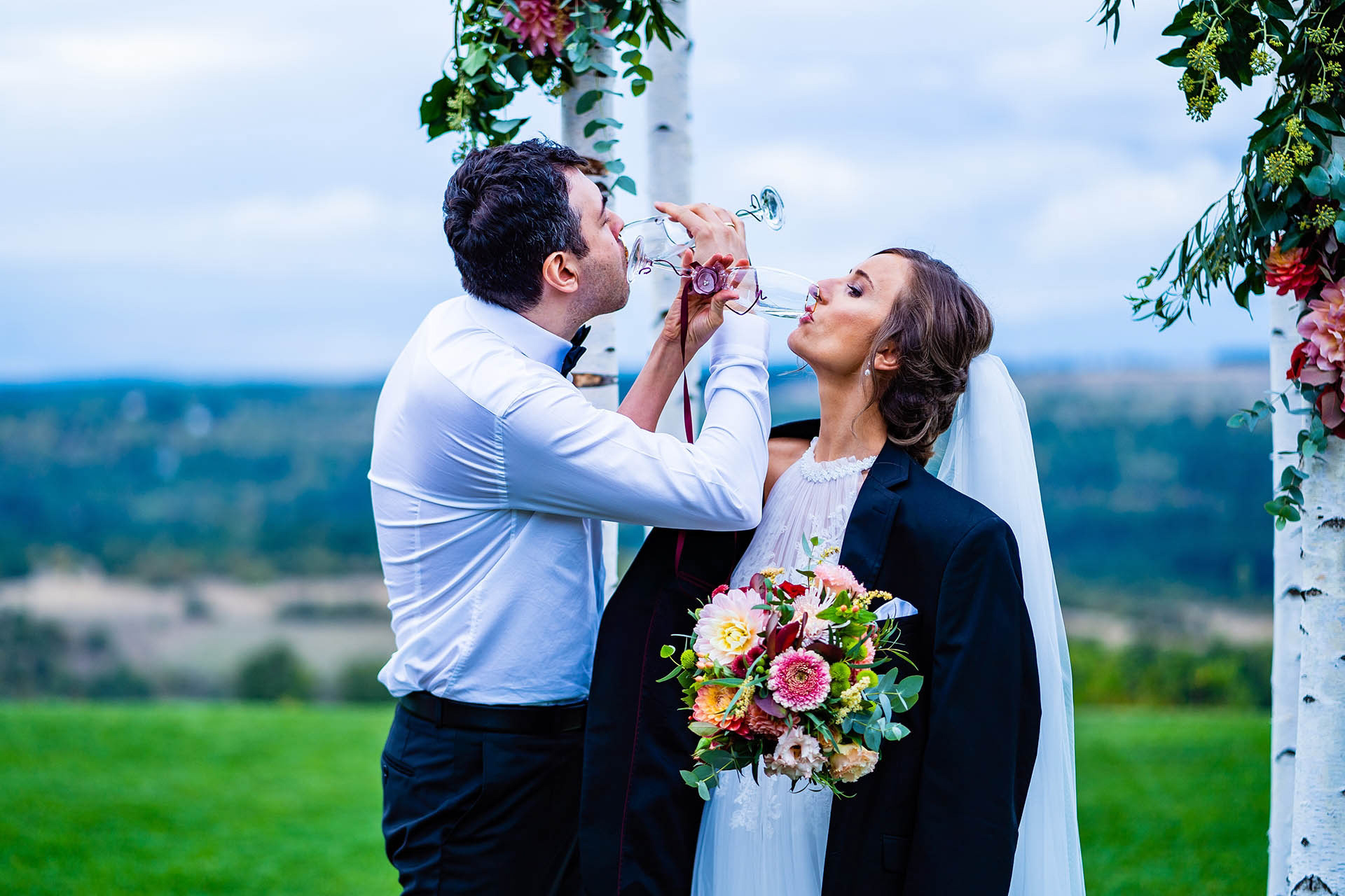 Имахме удоволствието да бъдем част от красивата сватба на Катерина и Николай в тесен семеен кръг и да сътворим за тях и скъпите им гости ефирна декорация с лек горски полъх и акцент от различни по цвят и форма далии.