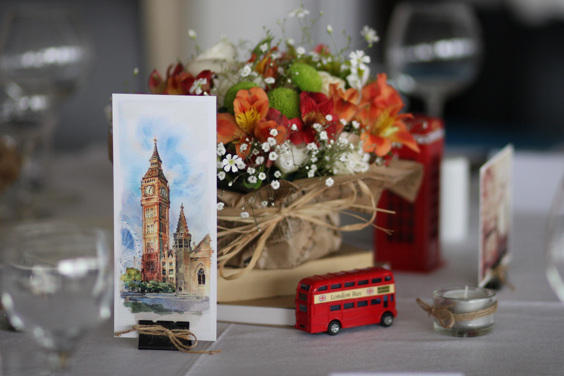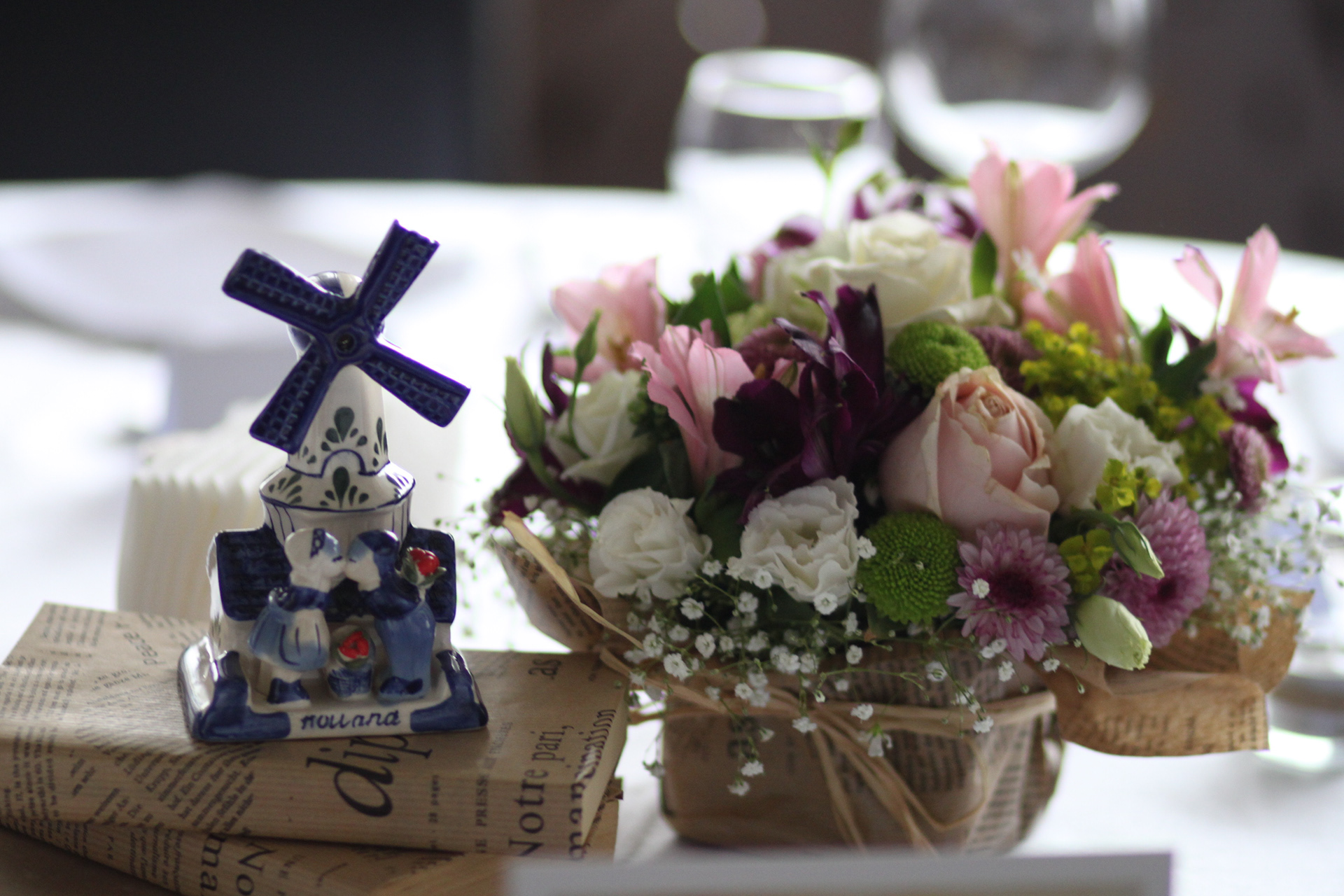 На входа на ресторанта поставихме табло, което упътваше гостите в приключението, а всяка една маса декорирахме със свежи и пъстри пролетни цветя и различни тематични декоративни елементи.